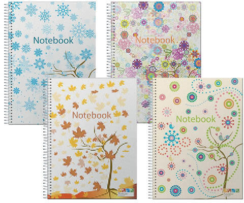 Ancor Notebook mintás polypropylene borítású A/4 méretű vonalas spirál füzet. 120 lapos, 90 grammos, mikroperforált, lyukasztott, színes szegélyű lapokkal. Önmagába visszaforduló fém spirállal. 4 évszakos mintával, vegyesen szállítjuk. Gyártó/első EU forgalmazó elérhetősége: