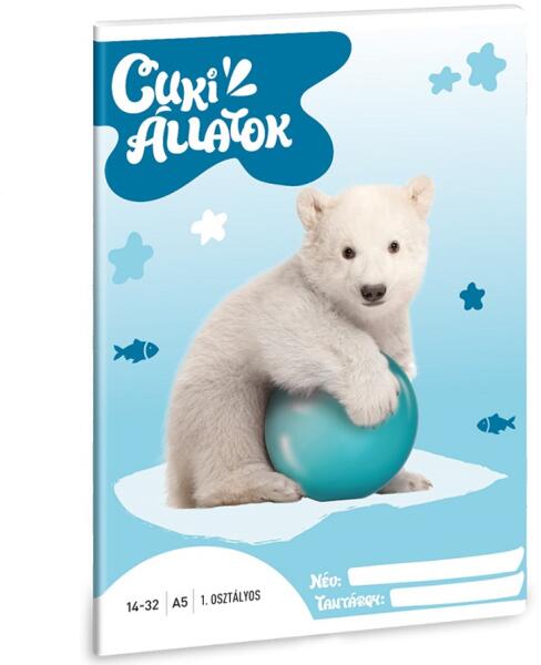 - Vonalas füzet elsősöknek, borítóján jegesmedve grafikával