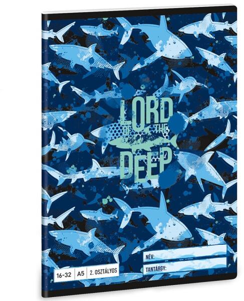 A LORD OF THE DEEP A/5 méretű füzet másodikosoknak szól, és a borítóján cápás grafika található. A füzet mérete A/5, vagyis 147x205 mm, ami ideális méret az iskolás gyerekek számára. Lapok száma 32, így elegendő helyet biztosítanak a jegyzetekhez és rajzokhoz.