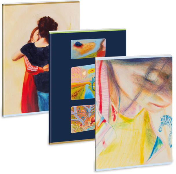 A füzetek külső és belső borítóin Vetlényi Zsolt képzőművész alkotásai láthatók