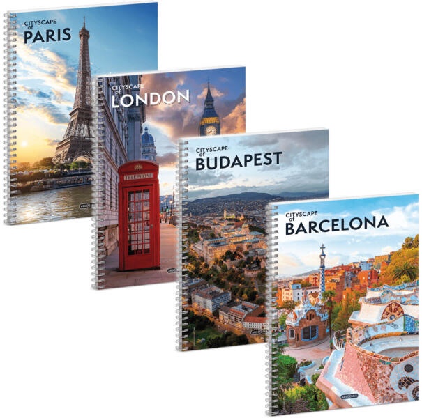 Cityscape spirál füzet A/4, kockás, 60 lapos, többféle. A/4-es méretű, prémium minőségű spirálfüzet. Belseje 60 lapos, négyzethálós, margózatlan. Belső lapok: 80 gr-os, szép fehér papír. Borítója: 320 gr-os papír, matt fóliával, fényes UV formalakkal. Többféle minta, az ár egy darabra vonatkozik. Nem biztos, hogy a kiválasztott minta van készleten.