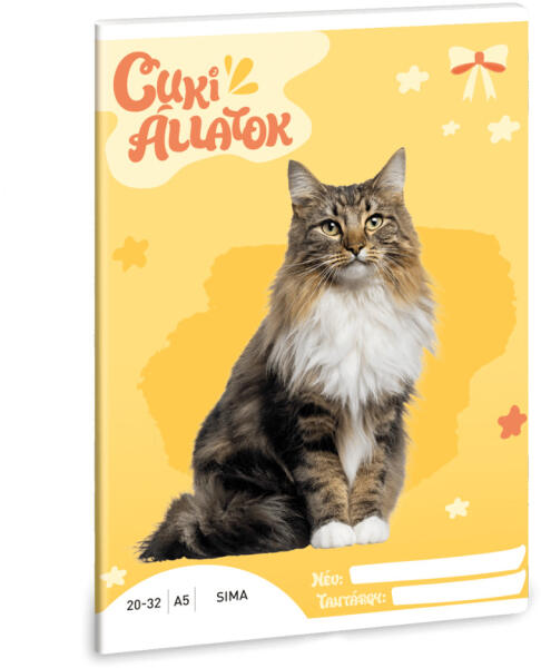 Cuki állatok tűzött füzet A/5, 32 lap sima, norvég erdei macska. Sima füzet alsósoknak Mérete: A/5 147x205 mm Lapok száma: 32 Lekerekített sarkokkal Borító: 250 gr-os műnyomó Belső: 75 gr-os papír margózott oldalakkal 20-32-es szabvány szerinti lapokkal