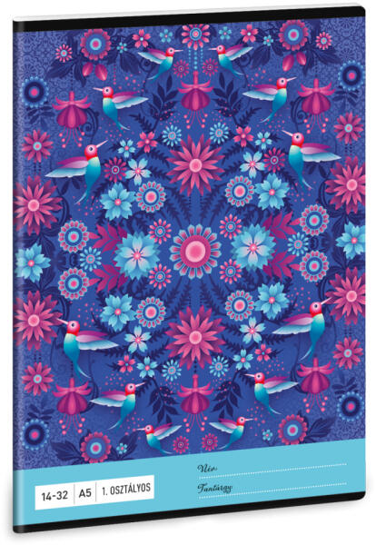 A/5-ös méretű, vonalas füzet 1. osztályos szabványos vonalazással. 32 lapos, belseje 75 gr-os papírból. Borítója 250 gr-os műnyomó kartonra lekerekített sarkokkal, fényes fóliázással, 4 szín nyomással készült.