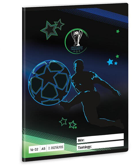 A/5-ös méretű, vonalas füzet 2. osztályos szabványos vonalazással. 32 lapos, belseje 75 gr-os papírból. Borítója 250 gr-os műnyomó kartonra lekerekített sarkokkal, fényes fóliázással, 4 szín nyomással készült.