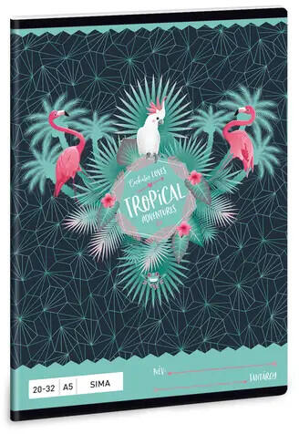 A/5-ös méretű sima füzet margózott oldalakkal. 32 lapos, belseje 70 gr-os papírból. Borítója 200 gr-os műnyomó kartonra lekerekített sarkokkal, fényes fóliázással, 4 szín nyomással készült. Méret: 147x205 mm