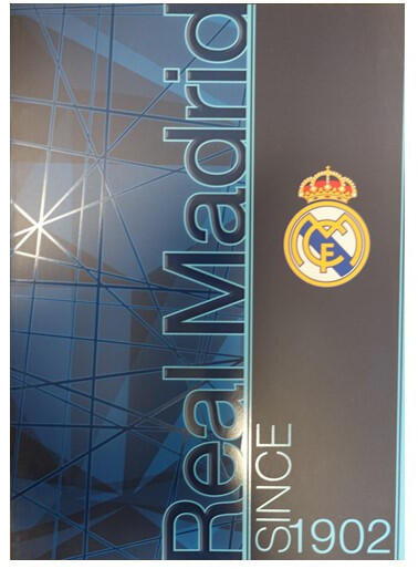- REal Madrid csodaszép füzet! - A4-es méretű, prémium minőségű kockás füzet. - Borítója lekerekített sarkokkal, 300 gr-os fényes műnyomó kartonra, 4 szín nyomással, matt fóliával és UV formalakkal készült, mely így izgalmas egyediséget ad a füzetnek. - Belseje 40 lapos, 70 gr-os szép fehér papír. - Méret: 206x296 mm.