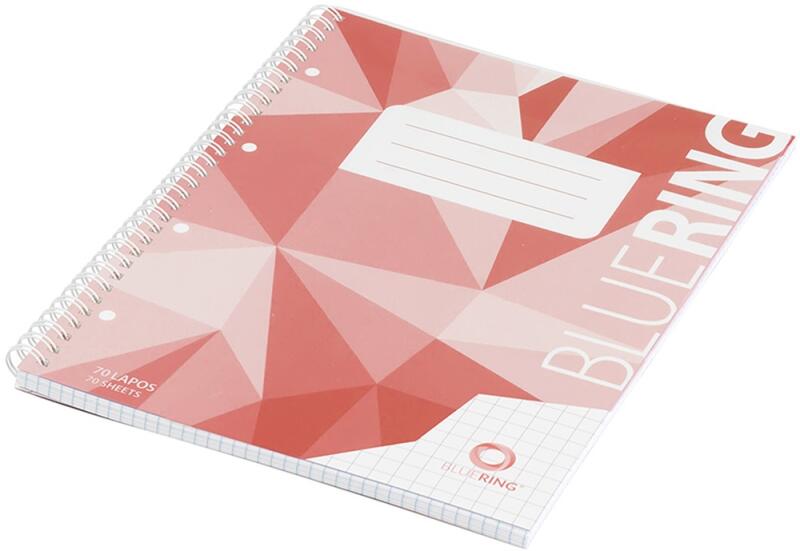 BLUERING Spirálfüzet A4, 70lap, műanyag borítós perforált lyukasztott Bluering® kockás (BRMB897763) - irodasziget