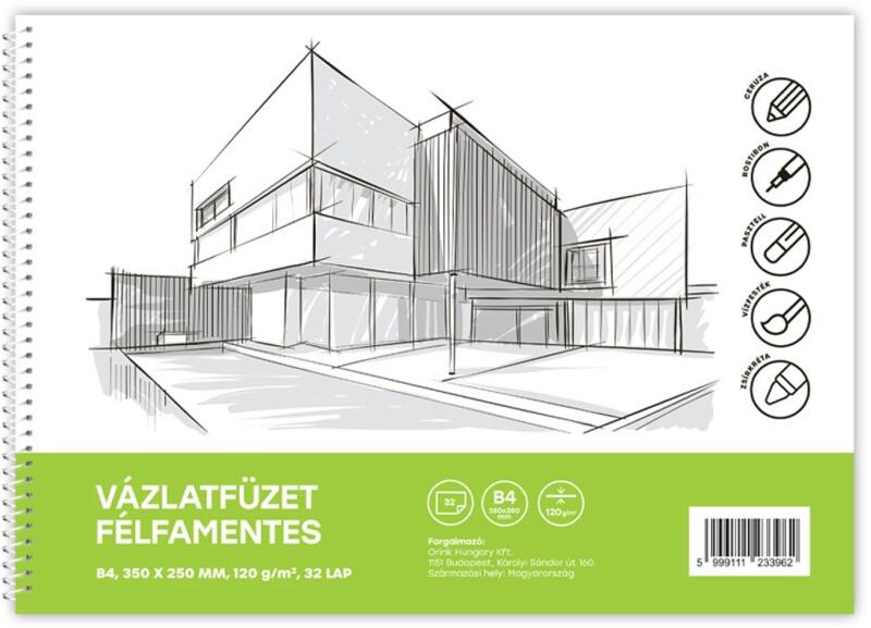 Rajz, festészet és iskolai használatra. 32 laposHiteles tájékoztatás: Elkötelezettek vagyunk termékeink biztonságának garantálásáért, nyomon követjük a termékbiztonsággal kapcsolatos valamennyi európai uniós és hazai szabályozást és biztosítjuk termékeink azoknak történő megfelelését. Az EU 2023/988-as számú Általános Termékbiztonsági Rendeletét (GPSR) is alkalmazzuk, így ha a termékeink biztonságát illetően fogyasztóként kérdése, észrevétele van, vagy esetleg balesetről van tudomása, kérjük, írja meg nekünk. GPSR: Orink Hungary Kft. ;H-1151 Budapest, Károlyi Sándor út 160. ; info@orinkhungary. hu; https://orink. hu/