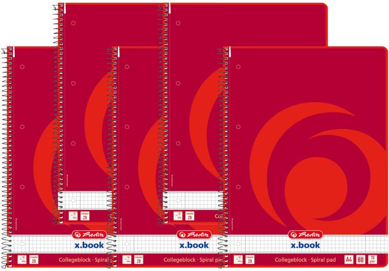 Herlitz jegyzetfüzet készlet, A4, egyspirál, 80 lap, 70g/m2, perforációk és mikroperforációk, négyzetek - X. Book (College), 5 db (0306456-5)
