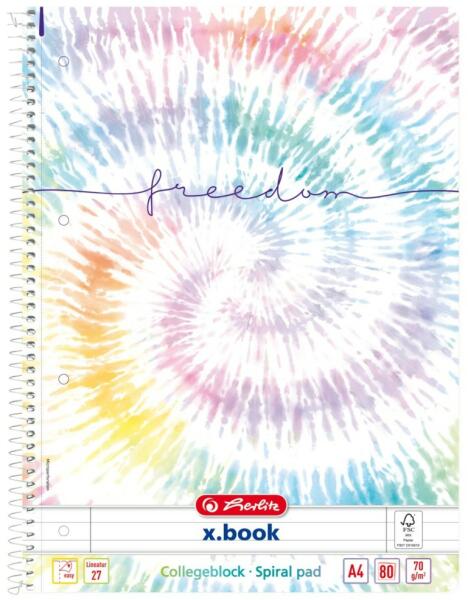 Herlitz Spirálfüzet A4 / 80 lap, lyuk. +perf. , vonalas, Batik Freedom