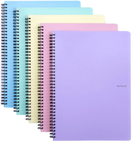 Spirál füzet A/5, vonalas, 60 lapos, PASTELINI, pasztell, többféle szín. Perforált lapok. Méret: 162x215x8mm. Lapok: 70g/m2. Borító anyaga: polypropylen. Az ár 1 darabra vonatkozik.