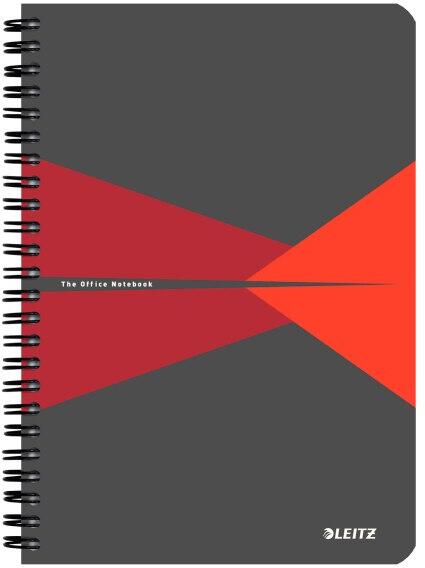 Leitz Office Spirálfüzet, A5, kockás, 90 lap, PP borító, Szürke/Piros (LZ44980025)