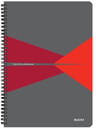 Leitz Spirálfüzet, A4, vonalas, 90 lap, PP borító, LEITZ "Office", szürke-piros (E44960025)