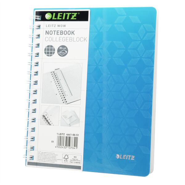 Leitz Spirálfüzet A5, 80lap kockás Leitz Wow jégkék
