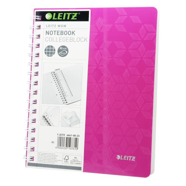 Leitz Spirálfüzet A5, 80lap kockás Leitz Wow rózsaszín (35639)