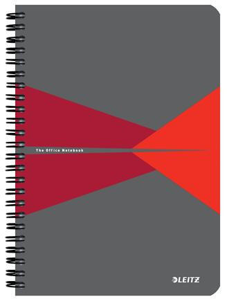 Leitz Spirálfüzet, A5, vonalas, 90 lap, PP borító, LEITZ "Office", szürke-piros (44991025) - bestoffice