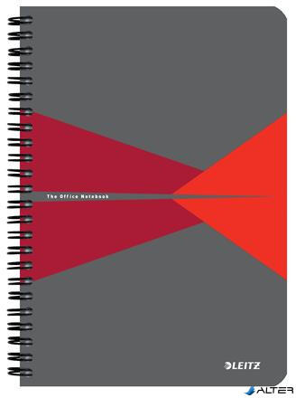 Leitz Spirálfüzet, A5, vonalas, 90 lap, PP borító, LEITZ 'Office', szürke-piros (44991025)