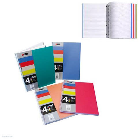 MQ Spirálfüzet Miquelrius 4 Notebook, A4, kockás, 4 x 25 lap, PP