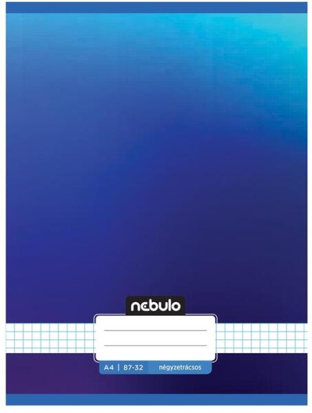 A/4-es tűzött iskolai négyzetrácsos füzet, 32 lapos (87-32). 12 db füzet (6 különböző minta: Monochrome=egyszínű, Gradient=színátmentes, 2db / minta) van egy csomagban. 70 g-os füzetlapok és 200 g-os műnyomó borító fényes fóliával.