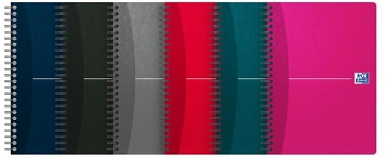 • Oxford Essentials A5 méretű, 90 lapos, vonalas, ikerspirálos jegyzetfüzet, hat klasszikus színben, hófehér belívvel, margóval, műanyag bevonató kartonborítóval.