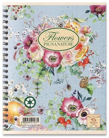 Pigna spirálfüzet, A5, 60 lap, vonalas, 8-féle, Nature Flowers (2182581)