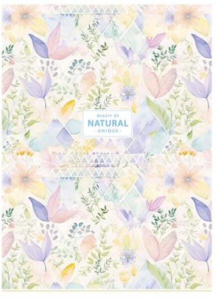-matt laminált, formalakkozott borító -210 g/m2 borító -70 g/m2 lapok -kerekített sarkok -fehér színű lapok -vegyes minták, a minta nem választható