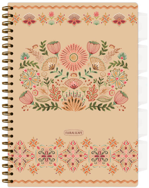 Spirálfüzet ARGUS 80 lapos, színregiszteres, 5 részes, A/4-es vonalas, Hímzett virág