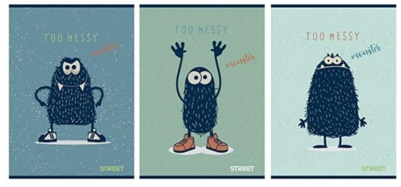 Füzet STREET Monsters A/5 54 lapos sima 300 g/m2 kétoldalon mázolt karton borító; matt laminált UV lakkal, magas minőségű belívekkel